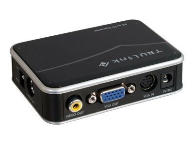 L'adaptateur PC-TV Cables To Go vous permet de convertir le signal VGA d'un ordinateur en une vidéo composite de sorte que vous pouvez connecter votre ordinateur, Mac ou autres périphériques VGA à votre téléviseur ou projecteur. Cette fonction est utile lorsque vous connectez votre ordinateur à un ancien téléviseur ou projecteur qui ne prend pas en charge le signal VGA pour un affichage sur grand écran. Cet appareil est également livré avec ports de sortie VGA et S-Vidéo pour permettre l'affichage sur plusieurs écrans qui peuvent prendre en charge ces signaux. Le kit de conversion est livré avec un adaptateur d'alimentation USB de sorte qu'il peut être alimenté à partir de votre ordinateur au lieu d'avoir une prise dédiée. Le faible encombrement de ce dispositif permet de le déplacer facilement ou de l'adapter à des espaces restreints. Les options du menu permettent une personnalisation des paramètres de réglage de l'affichage.