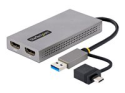 StarTech.com Adaptateur USB 3.0 vers double HDMI, 1x 4K 30Hz et 1x 1080p, carte vidéo et graphique externe, dongle adaptateur d'affichage double moniteur USB Type-A vers HDMI, prend en charge Windows uniquement, noir