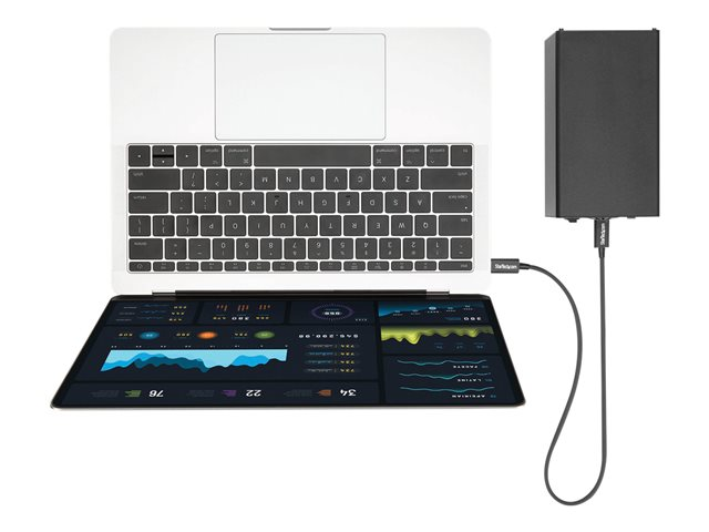Ce câble Thunderbolt 3 (40 Gb/s) vous permet de vous connecter à n'importe quel port Thunderbolt 3 (USB-C ) pour transmettre des vidéos et des données à vos appareils Thunderbolt, USB et DisplayPort. De plus, le câble vous permet également de charger vos appareils et vous pouvez brancher jusqu'à 6 appareils Thunderbolt 3 dans une installation en série.