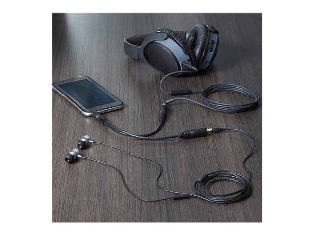 Le câble répartiteur stéréo en Y MUY1MFF 3,5 m est doté d'un connecteur mâle de 3,5 mm et de deux connecteurs femelles de 3,5 mm, qui permettent de dédoubler une prise de casque.