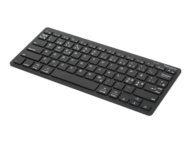 Description du produit Targus Multi-Platform - clavier - QWERTY - Nordique - noir - B2B Périphérique d'entrée Type de périphérique Clavier Interface Bluetooth 3.0 Technologie de connectivité Sans fil Localisation et disposition QWERTY Nordique Fonction de raccourcis clavier Interrupteur marche/arrêt Couleur Noir Dimensions (LxPxH) 28.6 cm x 12.1 cm x 2.24 cm Poids 280 g Programme de ventes par le fabricant Belkin B2B Garantie du fabricant 1 an de garantie -