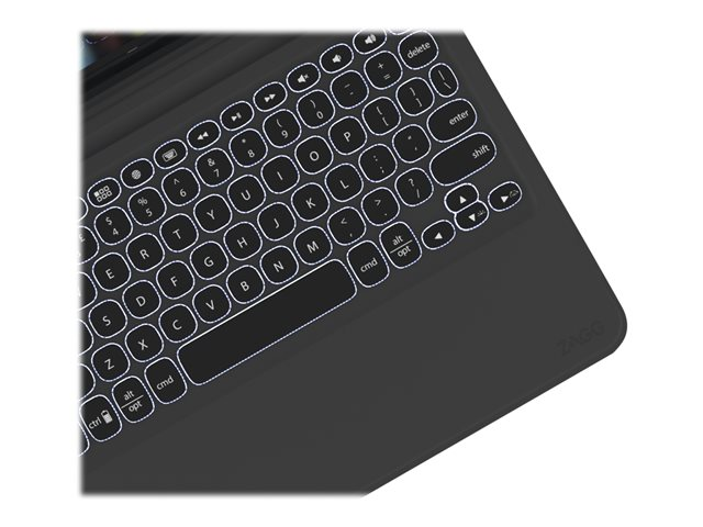 Description du produit ZAGG Slim Book Go - clavier et étui - Français - noir Périphérique d'entrée Type de périphérique Clavier et étui Rétroéclairé 7 couleurs Interface Bluetooth Localisation et disposition Français Couleur Noir clavier, noir étui Matière du boîtier Polycarbonate Dimensions (LxPxH) 24.8 cm x 20.5 cm x 2.01 cm Garantie du fabricant Garantie de 2 ans Conçu pour Apple 11-inch iPad Pro (1ère génération) -