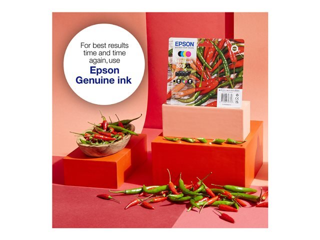 Les encres quatre couleurs séparées d'Epson sont fiables et parfaitement adaptées à l'impression quotidienne. Une cartouche abordable est disponible pour chaque type d'utilisateur dans des tailles standard et très haute capacité proposées sous forme séparée ou en tant que multipacks. Repérez-la facilement en magasin en recherchant le visuel Piments.