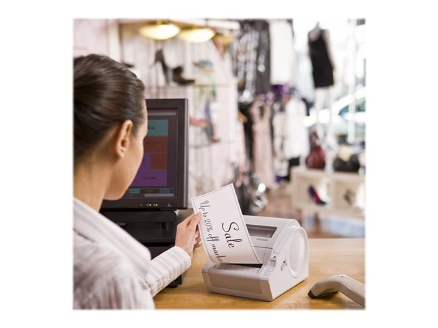 Utilisez P-touch Editor 5 pour ajouter des codes-barres, des cadres, des éléments graphiques et du texte en saisissant vos données, ou créez des liens vers divers fichiers de données, notamment des feuilles de calcul Microsoft Excel , des bases de données Microsoft Access et SQL Server, et des fichiers CSV pour imprimer plusieurs enregistrements. Vous pouvez également utiliser votre propre logiciel Windows . La TD-4000 est en effet fournie avec un pilote d'imprimante Windows certifié WHQL, et est compatible avec de nombreux logiciels Windows tiers.