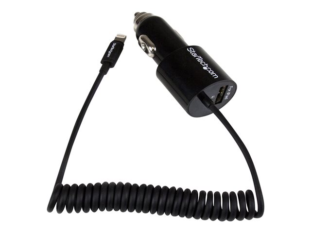 Adaptateur allume cigare avec câble Lightning et port USB 2.0 - Haute puissance 21W / 4,2A - Noir - Adaptateur d'alimentation pour voiture - 21 Watt - 4.2 A (USB, Lightning) - noir - pour P/N: USBLT1MW, USBLT1MWS, USBLT2MBR, USBLT2MW, USBLT30CMW, USBLTM1MBK, USBLTM1MWH