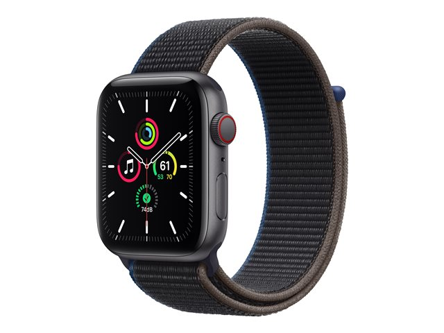 44 mm - espace gris en aluminium - montre intelligente avec boucle sport - nylon tissé - charbon de bois - taille du poignet : 145-220 mm - 32 Go - Wi-Fi, Bluetooth - 4G - 36.36 g