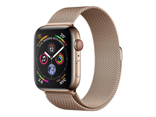 44 mm - acier inoxydable doré - montre intelligente avec boucle milanaise - maille d'acier - or - taille de bande 150-200 mm - 16 Go - Wi-Fi, Bluetooth - 4G - 47.9 g