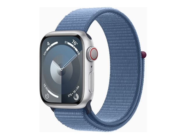 41 mm - aluminium argenté - montre intelligente avec boucle sport - deux couches de matières textiles tissées - bleu hiver - 64 Go - Wi-Fi, LTE, UWB, Bluetooth - 4G - 32.1 g