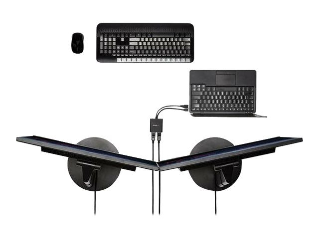 Ce hub MST vous permet de brancher deux écrans DisplayPort à votre ordinateur Mini DisplayPort. MST peut être utilisé sur n'importe quel appareil Windows prenant en charge DisplayPort 1.2, comme des modèles Lenovo Think Pad et Microsoft Surface . Lorsqu'il est connecté à des révisions précédentes de DisplayPort, comme DP 1.1, le hub MST tient lieu de répartiteur vidéo. Et puisque le hub MST est alimenté par USB, il suffira de votre ordinateur pour le commander.