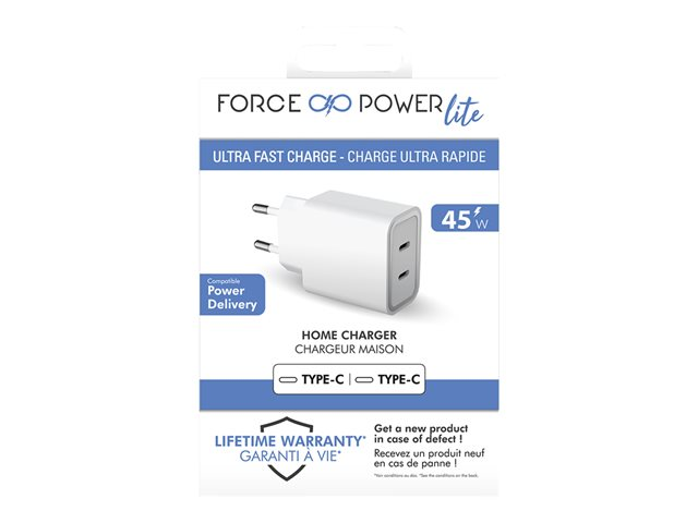 Le double chargeur maison Force Power compatible Power Delivery garantit une charge ultra rapide pour vous accompagner efficacement au quotidien.