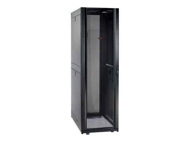 Armoires informatiques riches en fonctionnalités optimisées pour l'architecture en rangées InfraStruxure, la gestion des câbles, la distribution d'alimentation ainsi qu'une circulation d'air optimale.