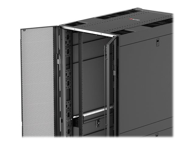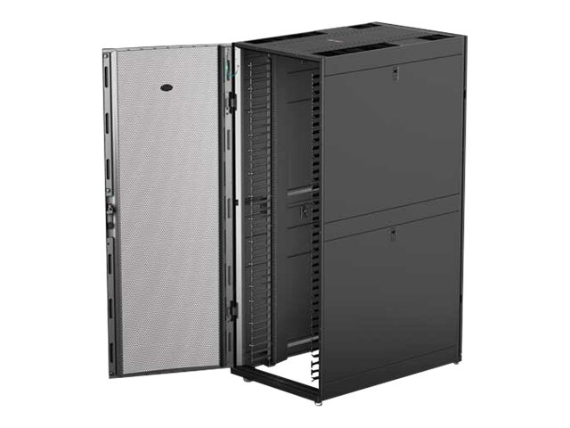 Armoires informatiques riches en fonctionnalités optimisées pour l'architecture en rangées InfraStruxure, la gestion des câbles, la distribution d'alimentation ainsi qu'une circulation d'air optimale.