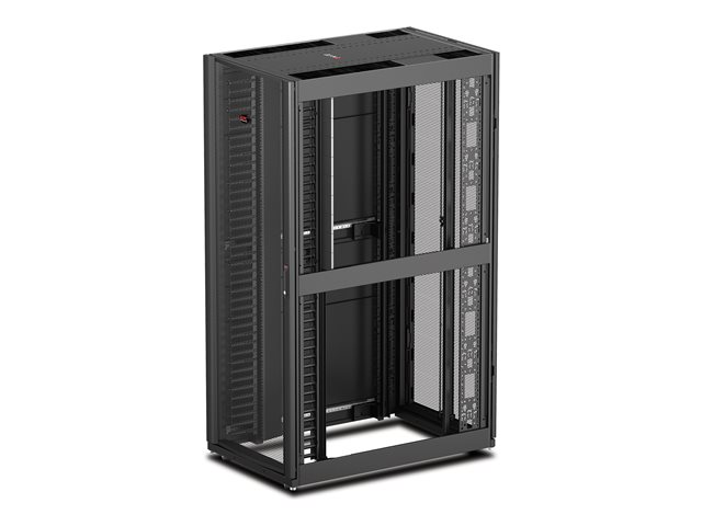 Armoires informatiques riches en fonctionnalités optimisées pour l'architecture en rangées InfraStruxure, la gestion des câbles, la distribution d'alimentation ainsi qu'une circulation d'air optimale.