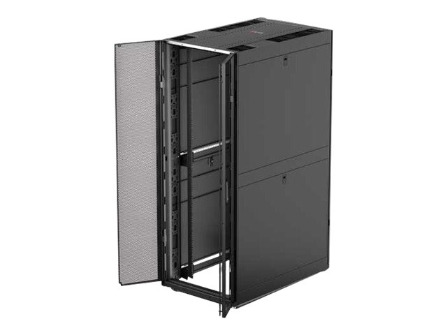 Armoires informatiques riches en fonctionnalités optimisées pour l'architecture en rangées InfraStruxure, la gestion des câbles, la distribution d'alimentation ainsi qu'une circulation d'air optimale.