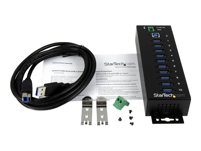 10 ports - Industriel Concentrateur USB - Avec protection contre surtensions/DES - Métal - Rail DIN - Alimenté - Concentrateur (hub) - 10 x SuperSpeed USB 3.0 - Montage sur rail DIN - Tension CC - pour P/N: ITB20D3250, USB312SAT3CB, USB315CB2M, USBLT1MWS, USBLT2MBR, USBLTM1MBK, USBLTM1MWH